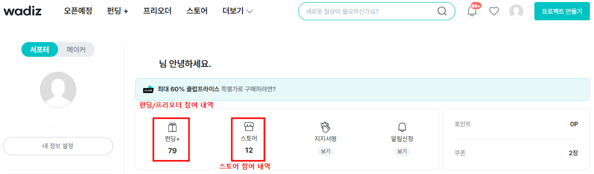 Wenn Ihre Funding- oder Pre-order-Teilnahmehistorie bei Wadiz nicht angezeigt wird, überprüfen Sie, ob Sie jemals ein Store-Produkt gekauft haben.