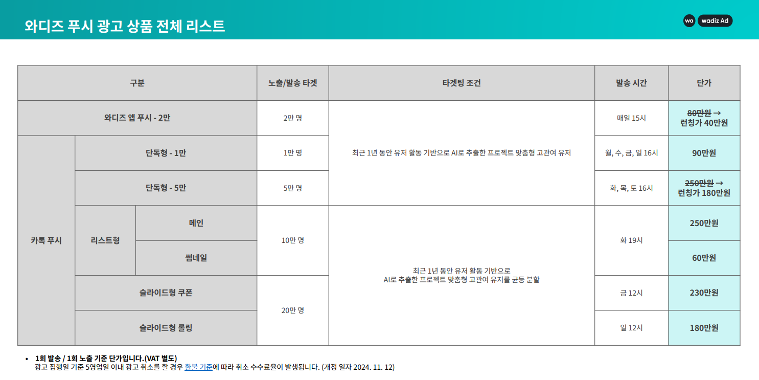 At Wadiz, depending on the project's objectives and promotional methods ① Display Advertisement ② Push Advertising ③ a target advertisement rent We offer branch advertising services.
