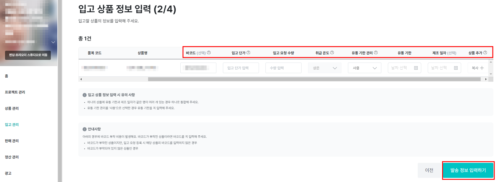 3. Please enter the information of the warehoused product.