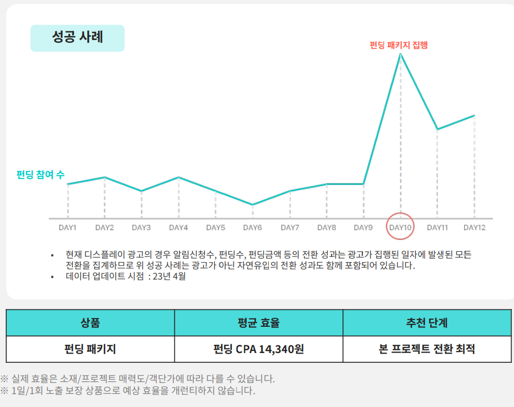 This is a package product that is exposed in the [Funding/Pre-order Home Banner Area] and [List Top Area] of the Wadiz Funding+ page. It can improve ad attention and click-through rate, and attract supporters' attention by exposing it at the top of the list.