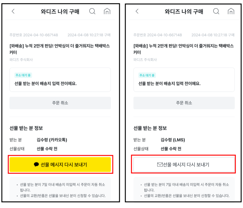 After logging in to Wadiz, click the [Store] tab in [My wadiz] and select [My Purchases] to resend.