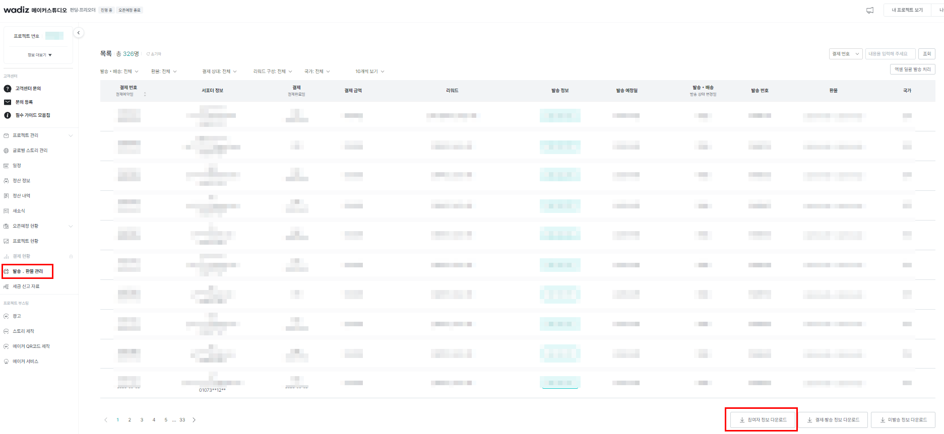 通知申込者情報はメーカースタジオ → [発送.返金ポリシー] → [参加者情報ダウンロード]をクリックして確認できます。