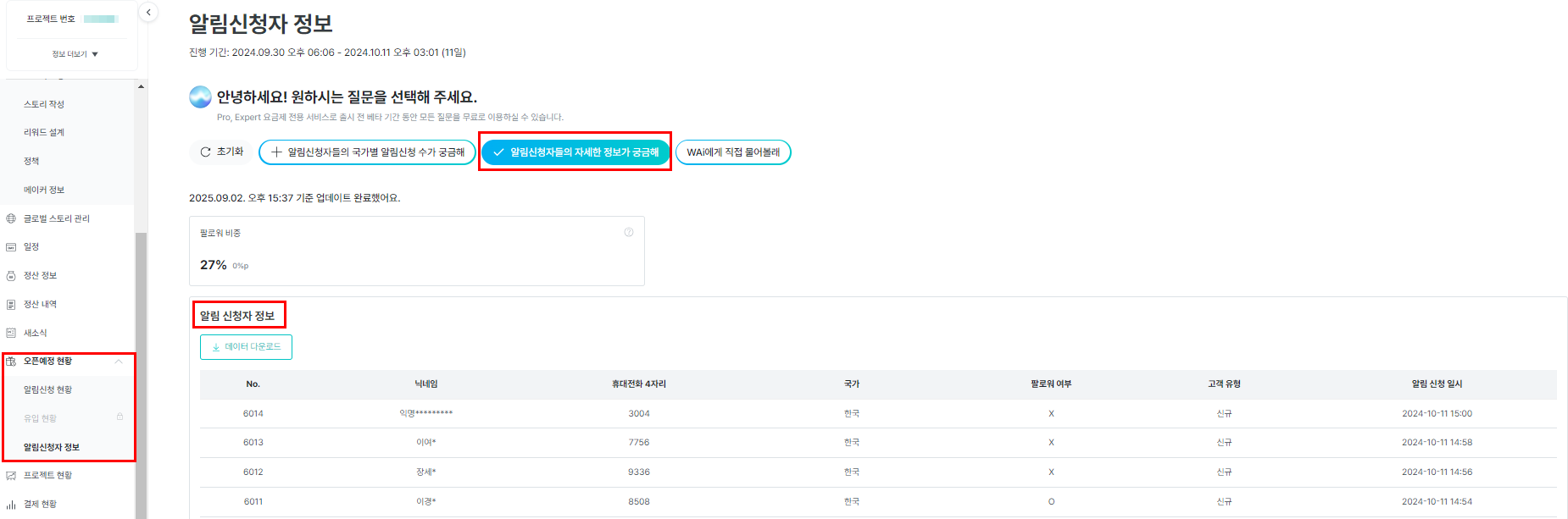 もうすぐ公開が終了し、本クラウドファンディングが公開されるともうすぐ公開通知申込者情報をすべて確認できます。