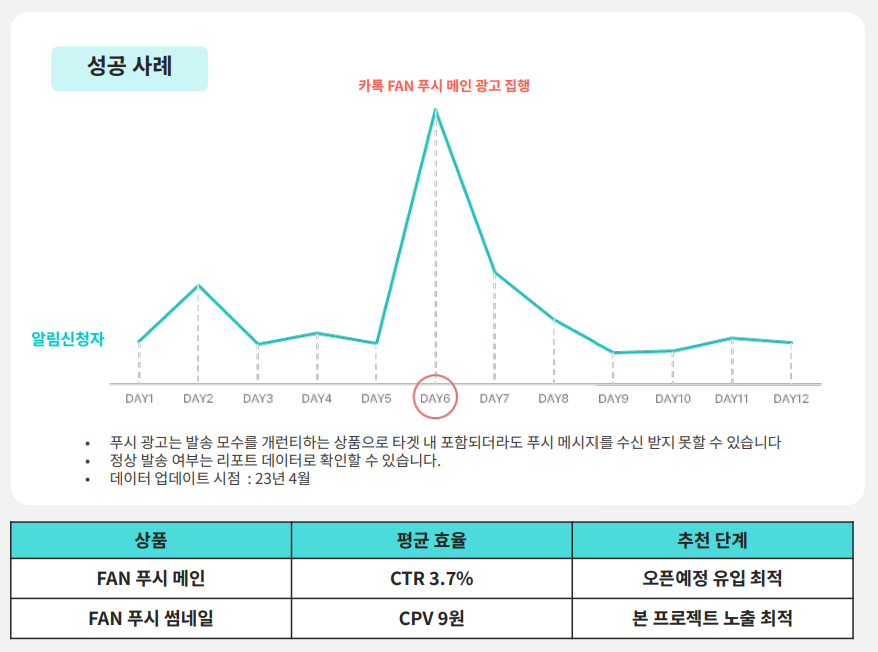 Wadizで活発に活動しているFAN 10万人(通知を設定、クラウドファンディング参加などの活動に基づいています)を対象とするKakaoTalkプッシュ送信商品のことを言います。