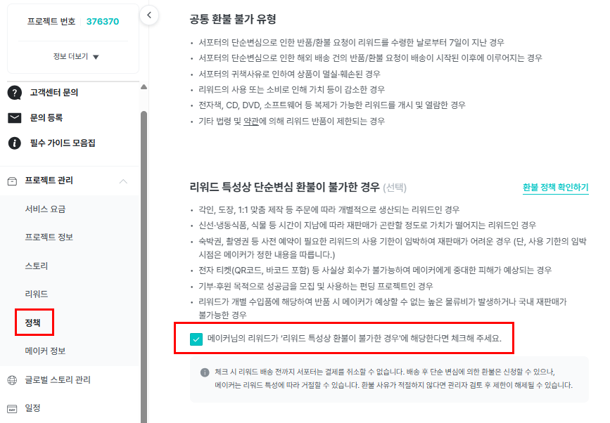 ✅ 와디즈 단순변심 환불 제한 설정 방법