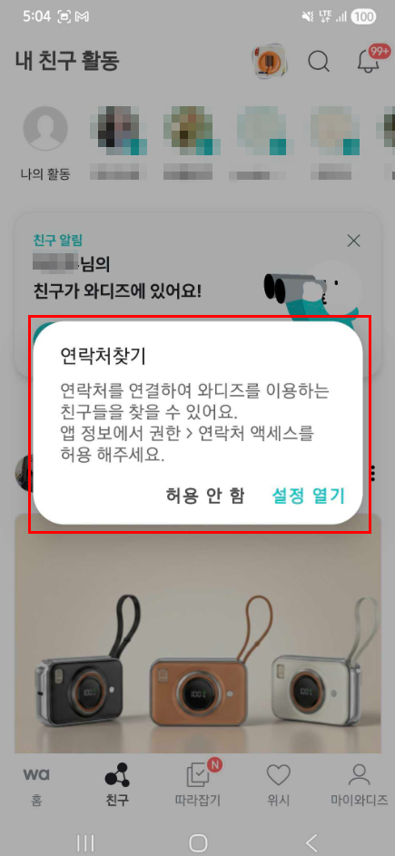 상대방이 와디즈에서 연락처 동기화를 사용 중인 경우