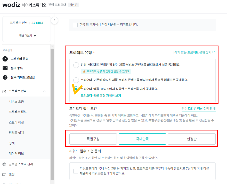 Wadiz Encore项目进行条件