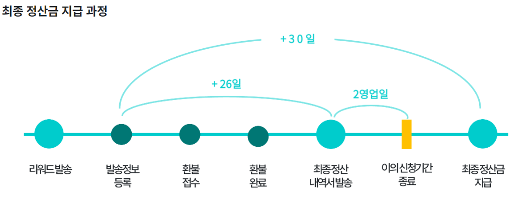 开具结算明细后,根据以下每月2次的结算日程,最终结算金将汇入。