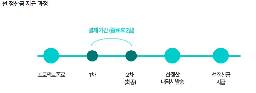 - 预结算服务仅限于申请后完成批准的项目,可以提前获得结算完成金的60%。 预结算支付金额可能会根据内部情况发生变动,详细内容请参考预结算服务使用条款。 (选定结算服务使用条款)