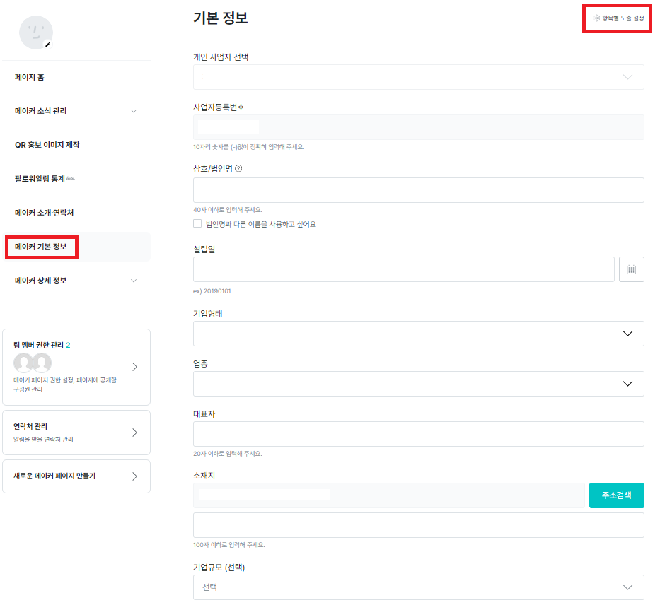 在创作者页面中,可以自由设置不公开显示企业的部分信息。