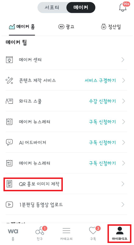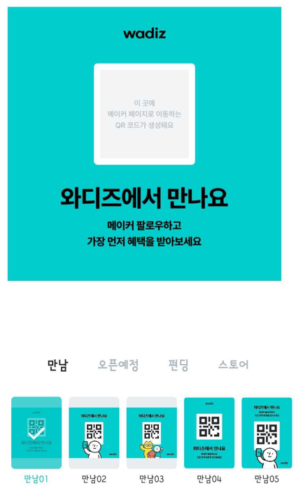 运行Wadizapp后,在[我的Wadiz] > [QR 홍보 이미지 제작]菜单中可以制作。