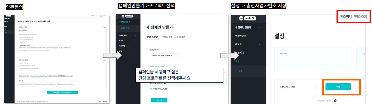 登录비즈센터后,在[设置]选项卡中保存充值企业注册号即可确认。