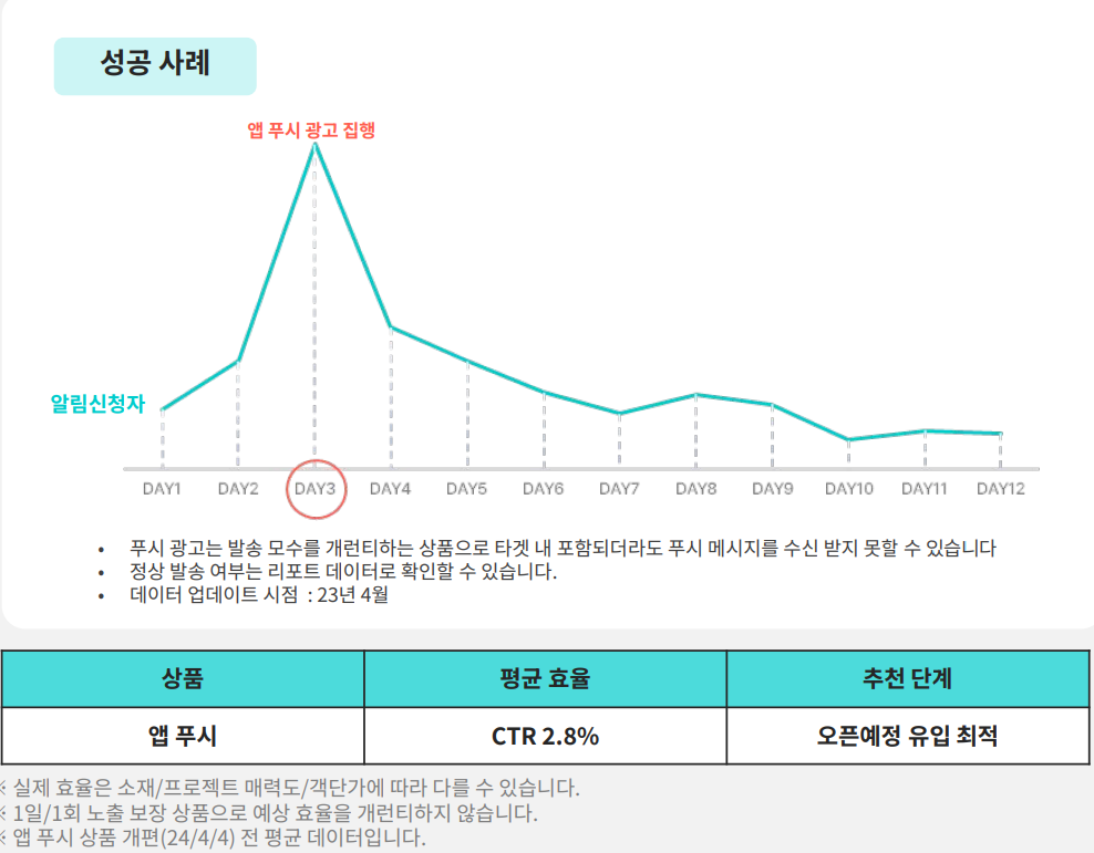Wadiz APP安装及推送同意用户中,向项目的定制高参与用户2万名发送APP推送的广告。